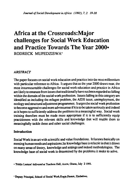 Africa at the crossroads : major challenges for social work education and practice towards the year 2000