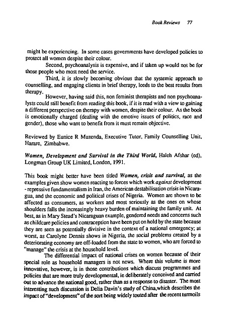 Book review : Women, development and suvival in the Third World