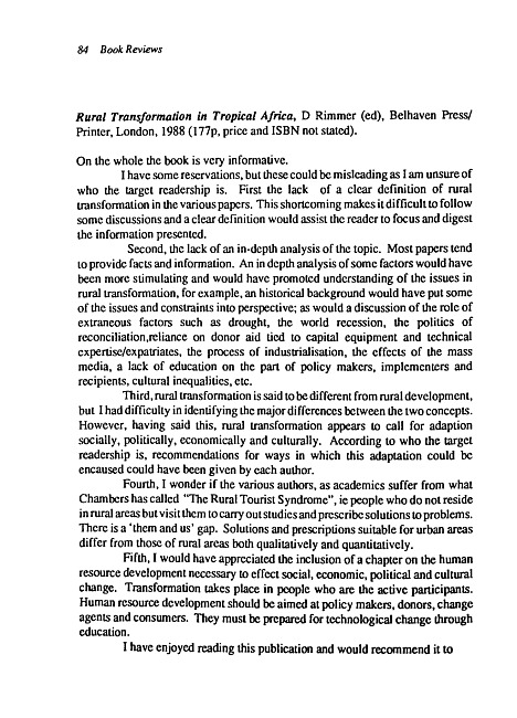 Review of: D. Rimmer (ed). Rural transformation in tropical Africa. London: Belhaven Press, 1988