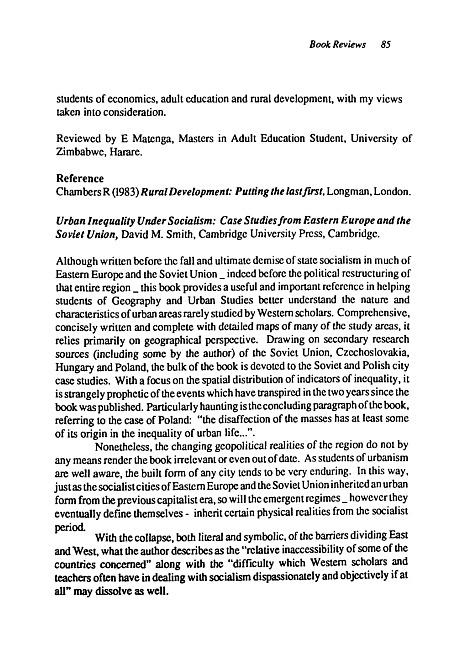 Review of: David M. Smith. Urban inequality under socialism. Cambridge: Cambridge University Press, 1989
