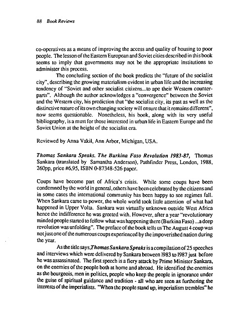 Review of: Thomas Sankara. Thomas Sankara speaks. London: Pathfinder Press, 1988