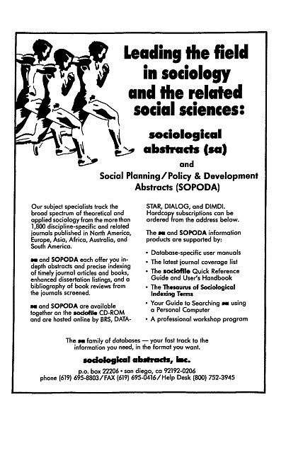 Advertisement for the Sociological abstracts (SA) and Social planning/policy & development abstracts (SOPODA) databases