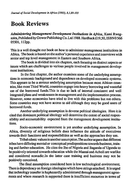 Review of: Kami Rwegasira. Administering management development institutions in Africa. Aldershot: Gower, 1988