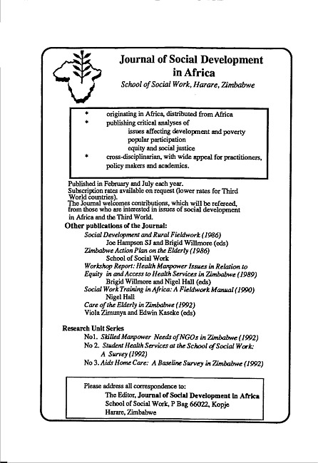 Journal of social development in Africa. Vol. 8 No. 2 (1993)