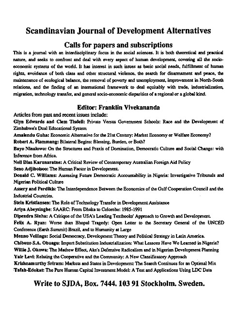 Journal of social development in Africa. Vol. 8 No. 2 (1993)