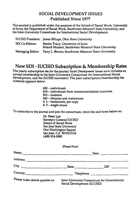 Advertisement for the journal Social development issues