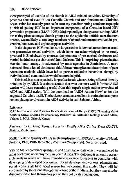 Review of: Valerie Møller. Quality of life in unemployment. Pretoria: HSRC Publishers, 1993