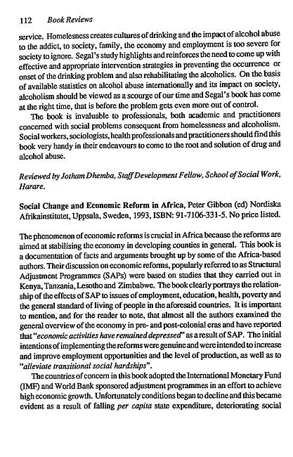 Review of: Peter Gibbon (ed). Social change and economic reform in Africa. Uppsala: Nordiska Afrikainstitutet, 1993