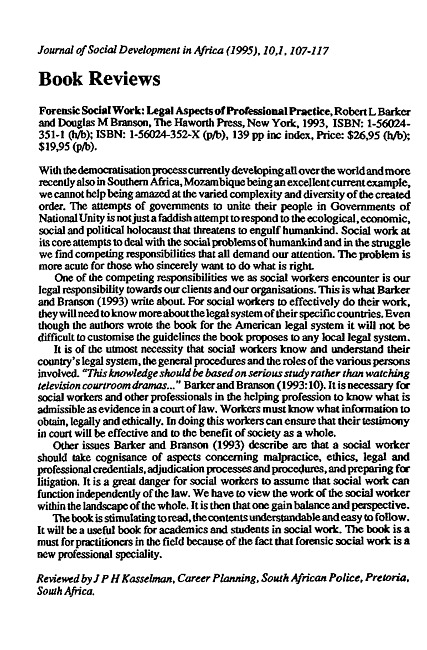 Book review : Forensic social work by Robert L. Barker and Douglas M. Branson
