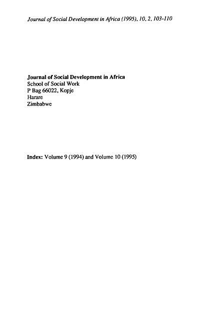 Journal of social development in Africa. Vol. 10 No. 2 (1995)