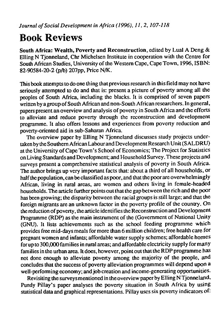 Review of: Lual A. Deng & Elling N. Tjønneland (eds.). South Africa. Bergen: Chr. Michelsen Institute; South Africa: Centre for Southern African Studies, 1996