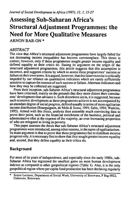 Assessing Sub-Saharan Africa's structural adjustment programmes : the need for more qualitative measures