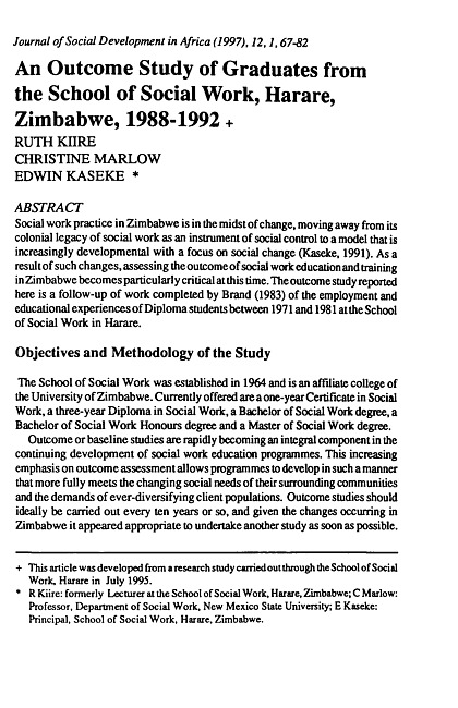 An outcome study of graduates from the School of Social Work, Harare, Zimbabwe, 1988-1992