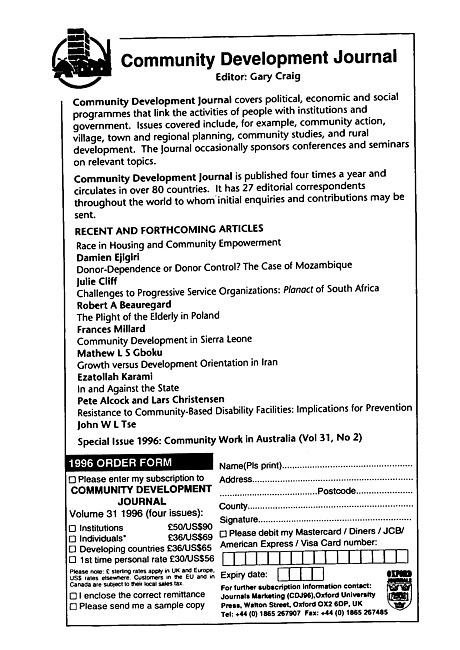 Advertisement for the Community development journal