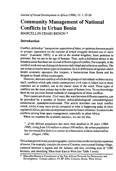 Community management of national conflicts in urban Benin
