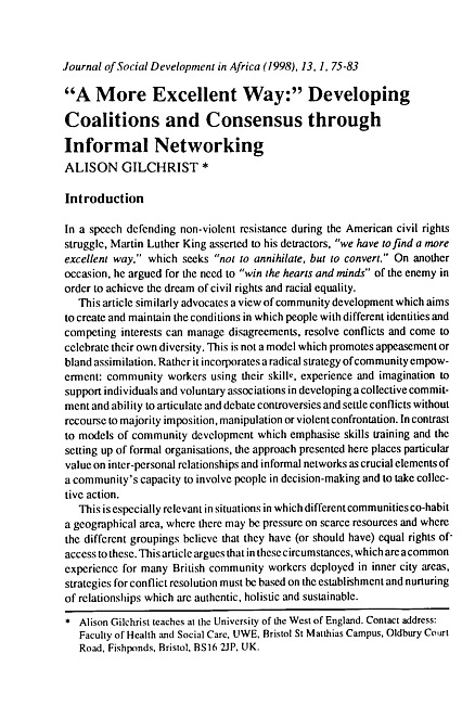 "A more excellent way : " developing coalitions and consensus through informal networking