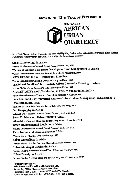 Advertisement for the journal African urban quarterly