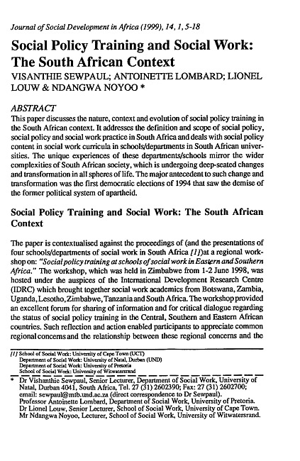 Social policy training and social work : the South African context