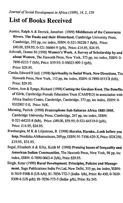 Journal of social development in Africa. Vol. 14 No. 2 (1999)