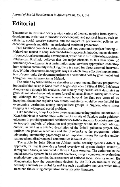 Journal of Social Development in Africa