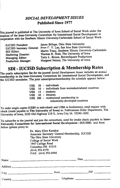 Advertisement for the journal Social development issues