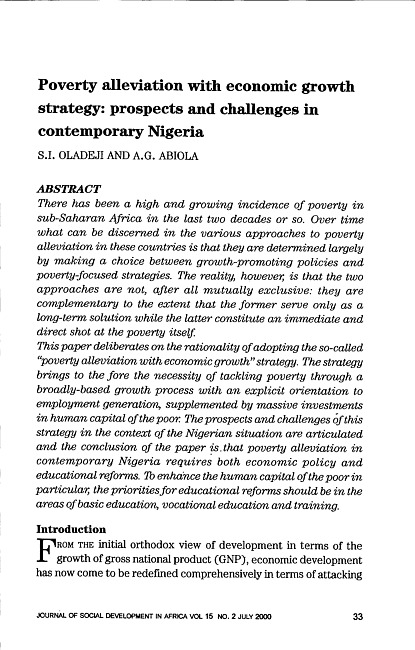 Poverty alleviation with economic growth strategy : prospects and challenges in contemporary Nigeria