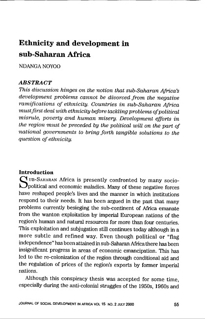 This discussion hinges on the notion that sub-Saharan Africa's development problems cannot be divorced from the negative ramifications of ethnicity. Countries in sub-Saharan Africa mustfirst deal with ethnicity beforetackling problems of political misrule, poverty and human misery. Development efforts in the region must be preceded by the political will on the part of national governments to bring forth tangible solutions to the question of ethnicity.