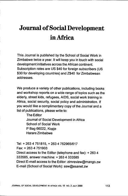 Journal of social development in Africa. Vol. 15 No. 2 (2000 July)