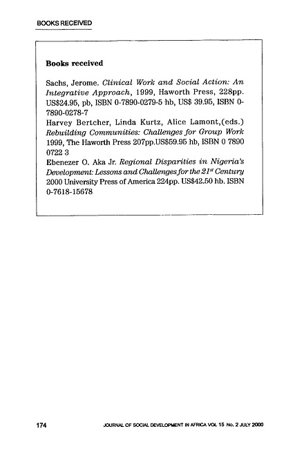 Journal of social development in Africa. Vol. 15 No. 2 (2000 July)