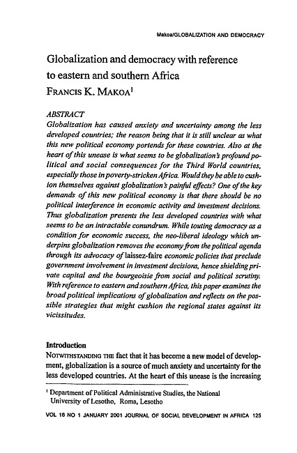 Globalization and democracy with reference to eastern and southern Africa