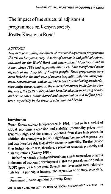 The impact of the structural adjustment programmes on Kenyan society