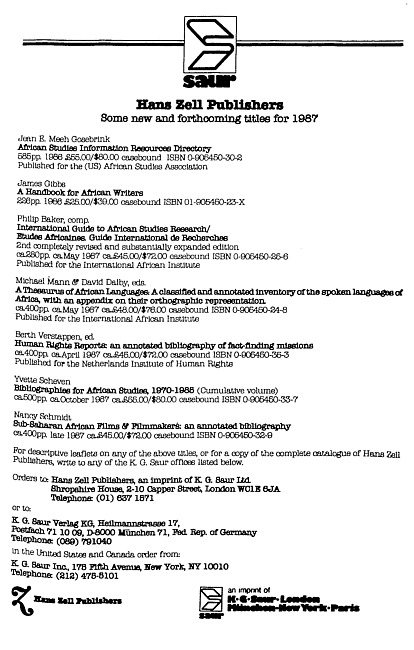 Advertisement for Hans Zell Publishers