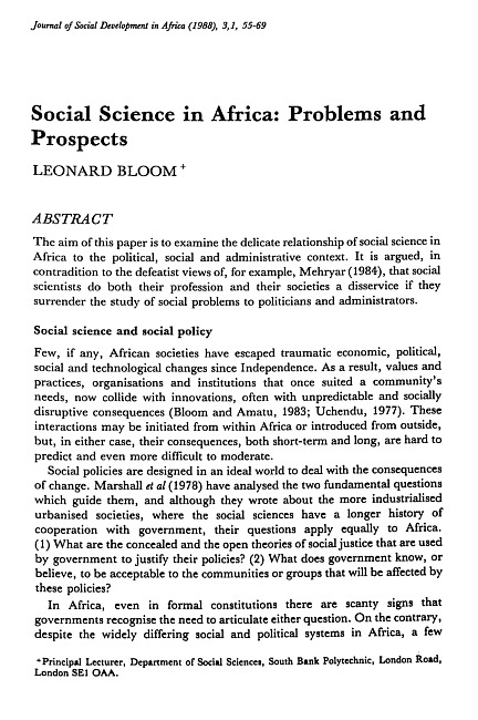 The aim of this paper is to examine the delicate relationship of social science in Africa to the political, social and administrative context. It is argued, in contradiction to the defeatist views of, for example, Mehryar (1984), that social scientists do both their profession and their societies a disservice if they surrender the study of social problems to politicians and administrators.