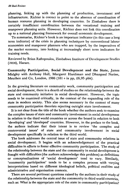 Review of: James Midgley. Community participation, social development and the state. London: Meuhen and Co., 1986