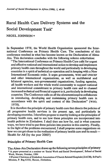 Discusses the Zimbabwe government's rural health care services and the role of health care services in development.