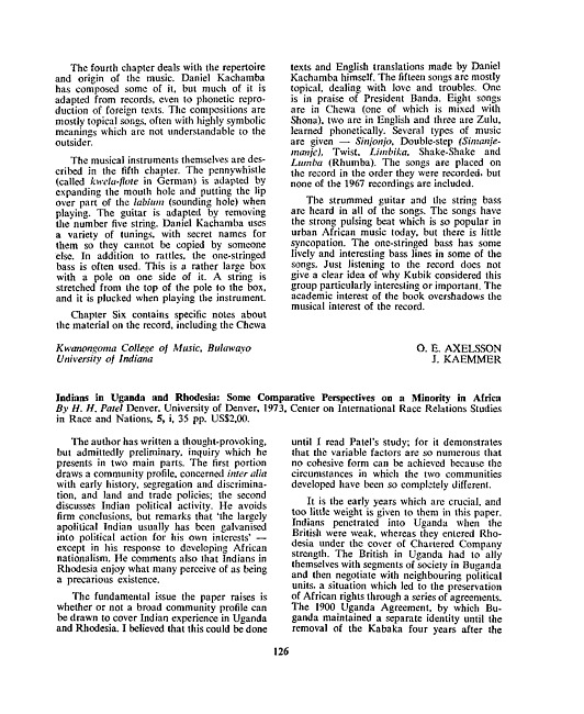 Review of: Hasu H. Patel. Indians in Uganda and Rhodesia. Denver: University of Denver, 1973