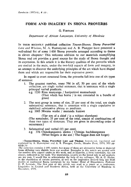 Form and imagery in Shona proverbs