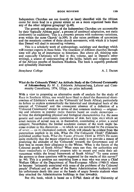 Review of: Melville Leonard Edelstein. What do the Coloureds think? Johannesburg: Labour and Community Consultants, 1974