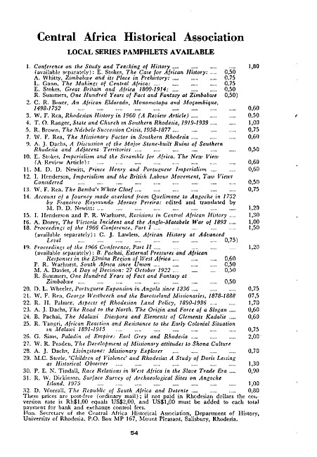 Advertisement : Central Africa Historical Association local series pamphlets available