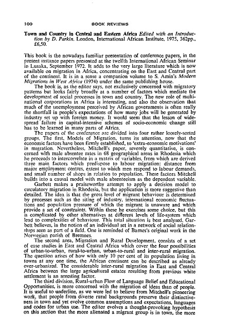 Review of: Town and country in Central and Eastern Africa. London: International African Institute, 1975