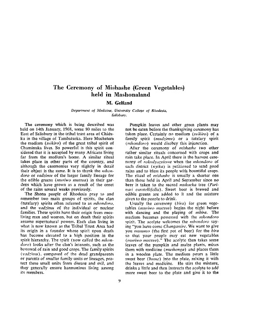 The ceremony of mishashe (green vegetables) held in Mashonaland