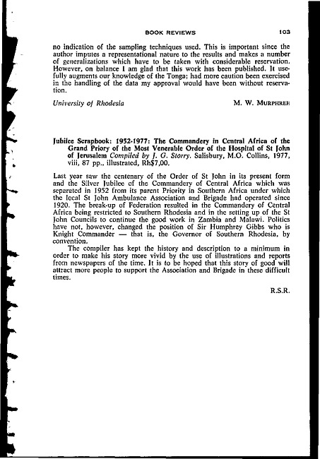 Review of: J.G. Storry. Jubilee scrapbook, 1952-1977. Salisbury: M.O. Collins, 1977