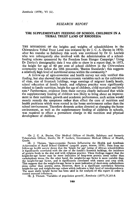 The supplementary feeding of school children in a tribal trust land of Rhodesia