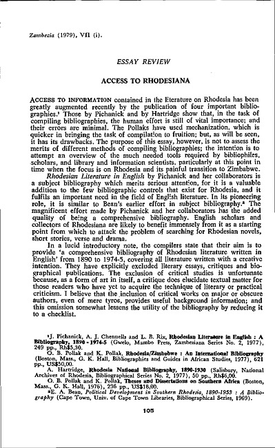 Access to Rhodesiana