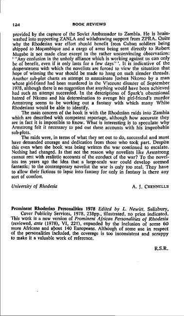 Review of: L. Newitt (ed). Prominent Rhodesian personalities, 1978. Salisbury: Cover Publicity Services, 1978