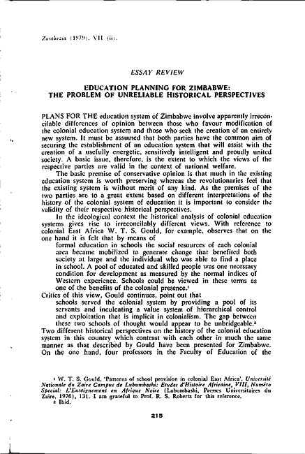 Education planning for Zimbabwe : the problem of unreliable historical perspectives