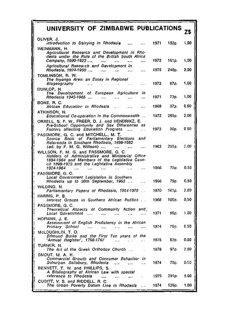Advertisement : University of Zimbabwe publications