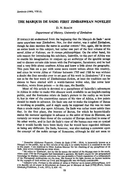 The Marquis de Sade : first Zimbabwean novelist