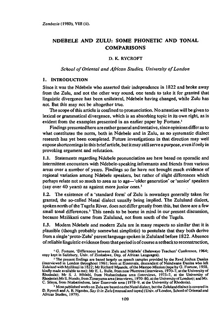 Ndebele and Zulu : some phonetic and tonal comparisons