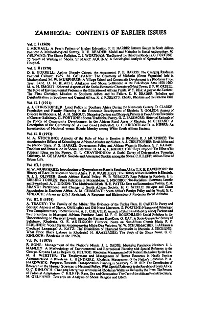 Zambezia, contents of earlier issues